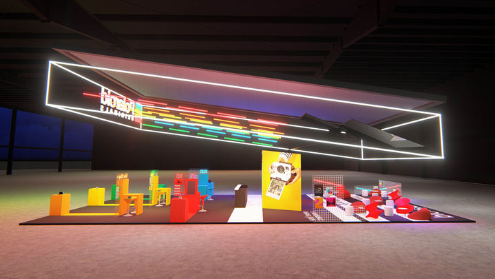 Design inspired by the operation of the Polaroid camera: it catches the light and colors, it is chemicaly processed and then is printed forever. A very open and inviting booth with dynamic atmosphere where you can watch, hear, touch and chill out, creating an awesome experience.